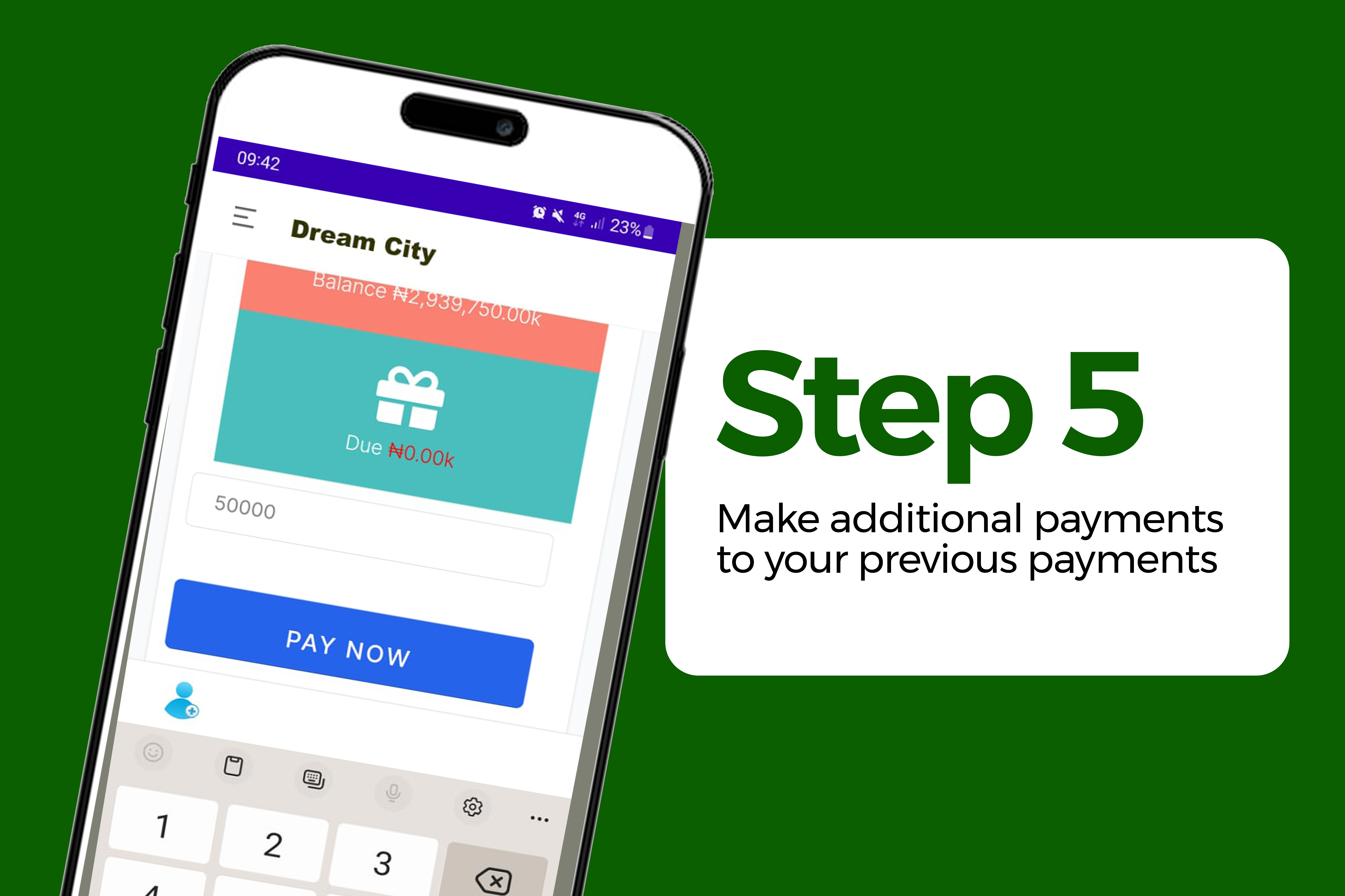 To enable us serve you better, kindly follow the account creation on our platform( https://dreamcityhes.com/land), login, enable dedicated bank account and do all transaction with us through that account. Our representation will always guild you if you need help, clarity and more information kindly contact us!